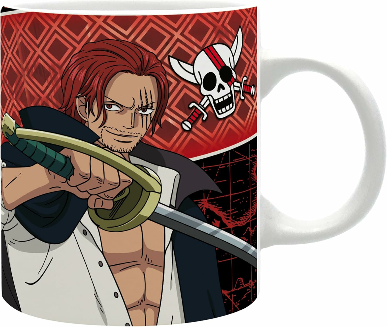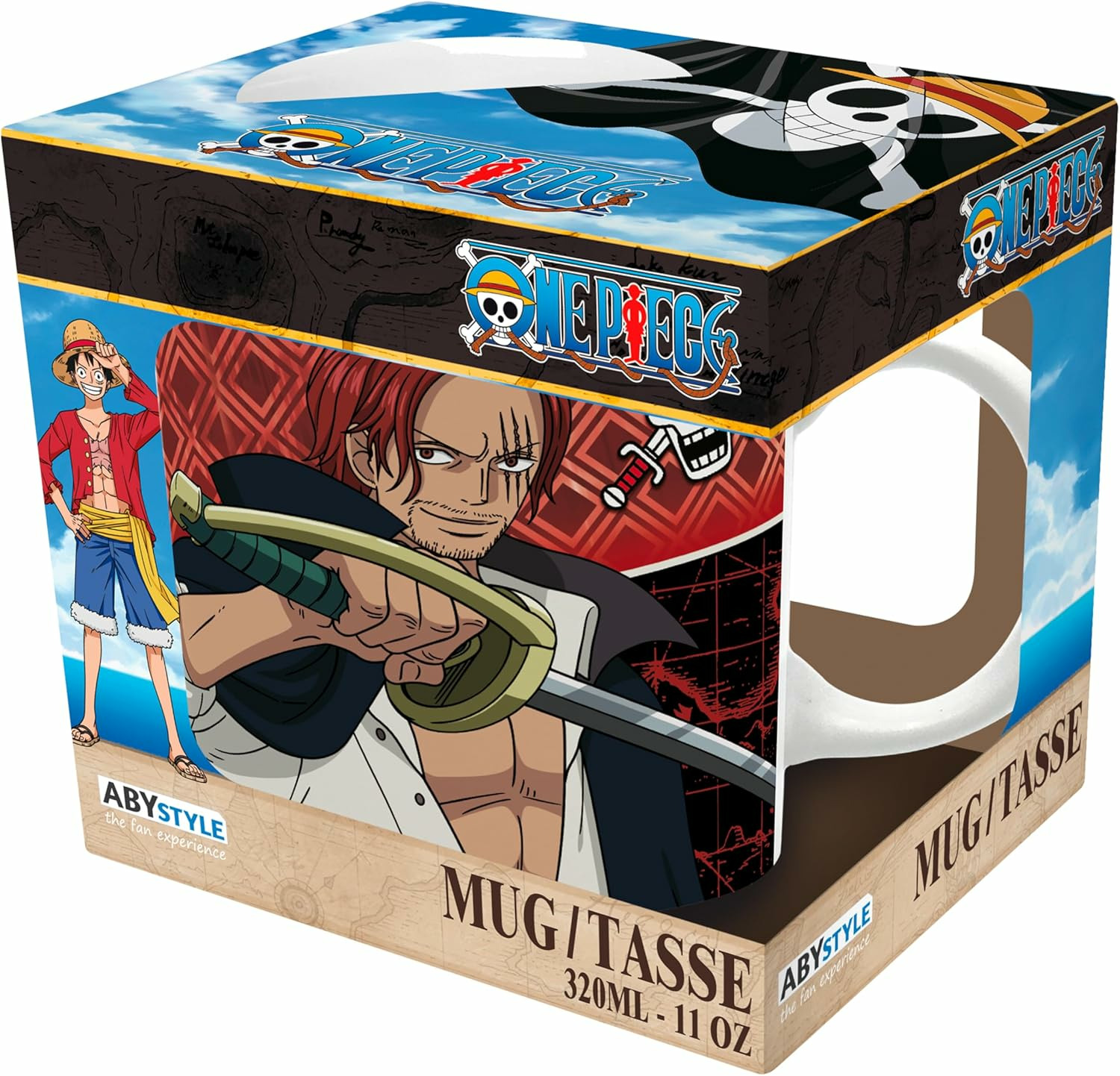 Capitaine de l'Équipage du Roux et l'un des puissants quatre empereurs, Shanks est également un ancien membre du légendaire équipage des Pirates Roger. Il a inspiré Monkey D. Luffy dans son voyage en tant que pirate. Maître du combat au sabre et homme de parole, Shanks se distingue par son charisme, sa détermination et son incroyable influence sur l'univers de One Piece. Rejoignez sa cause et sa vision de la piraterie avec ce mug One Piece