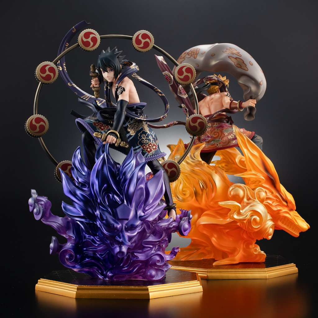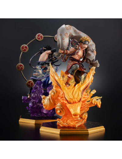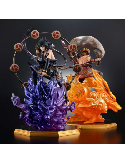 La gamme de statues « G.E.M. » s'enrichit de la licence Naruto Shippuden ! Dans cette nouvelle édition, Naruto et Sasuke arborent les traits typiques des dieux japonais du Tonnerre et du Vent. Détails époustouflants… une qualité sublime !