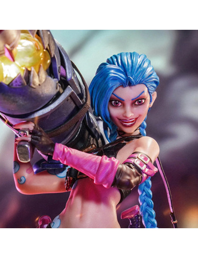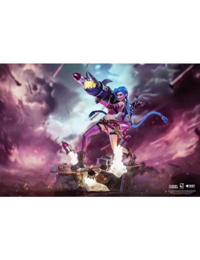 Jinx rejoint les champions de League of Legends de PureArts ! Dans son skin original emblématique, Jinx est en action avec son lance-roquettes Fishbones. Son pistolet à impulsion Zapper et son minigun Pow-Pow sont à ses côtés et prêts à être utilisés au combat. Des lumières LED réparties sur l'ensemble de la statue donnent vie aux détails.