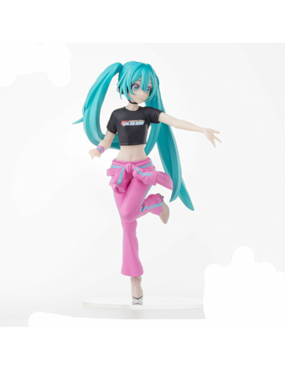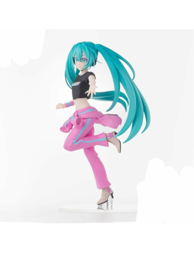 Découvrez la figurine HATSUNE MIKU - DESKTOP X DECORATE FIGURE - HATSUNE MIKU BERRY COSTUME Ver., fabriquée par SEGA. Cette pièce de collection présente Hatsune Miku dans une tenue vive et stylée, comprenant un pantalon rose vif avec des bandes bleues, un haut court noir arborant un logo, et une veste rose nouée autour de la taille. Les détails soignés, tels que ses longs cheveux turquoise et sa pose énergique, capturent parfaitement l'esprit dynamique et joyeux du personnage. Mesurant environ 17 cm de hauteur, cette figurine en PVC et ABS est idéale pour décorer votre bureau ou votre étagère. Un ajout parfait pour tous les fans de Hatsune Miku