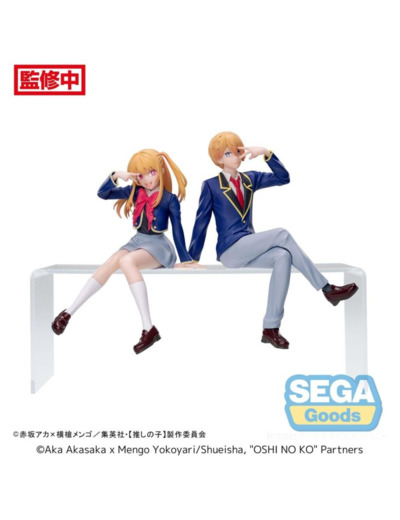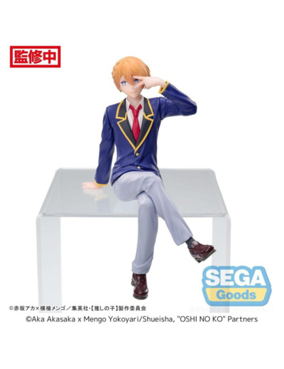 Statuette d'Aqua Hoshino en PVC, représentant l'un des personnages principaux de la série Oshi no Ko, produite par Sega dans la collection PM Perching, taille env. 14 cm.