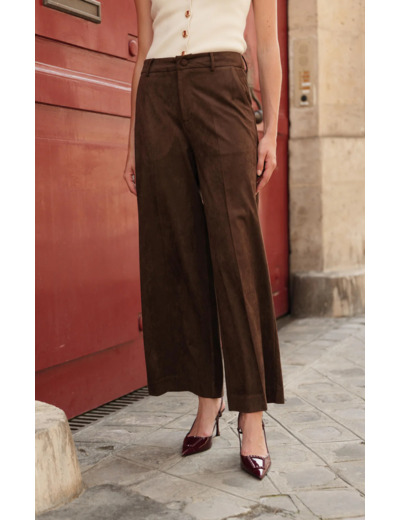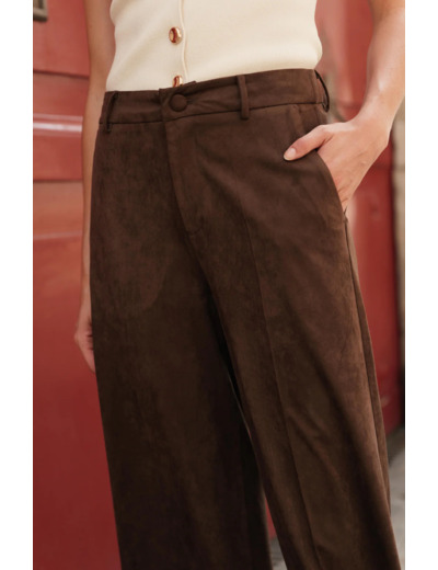 Optez pour le parfait équilibre entre le confort et le raffinement avec notre pantalon Diane en suédine. Celui-ci a une coupe wide leg c'est à dire qu'il va être évasé des hanches aux bas de jambes pour apportera de la légèreté à la silhouette tandis que sa matière effet daim ultra douce offre un confort optimal. Le pantalon Diane est une pièce forte et féminine à adopter dans son dressing.