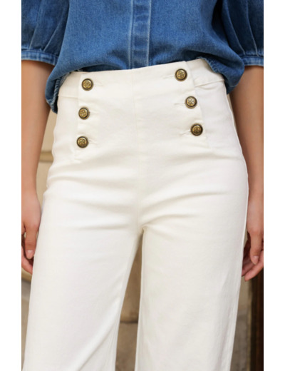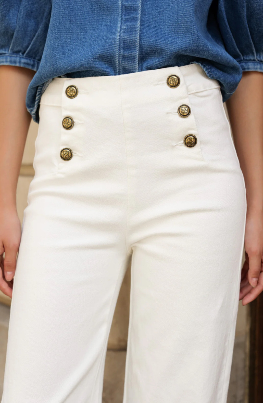 Le jean Victorine a été conçu avec des détails précis qui le rendent unique : ses boutons à pont.