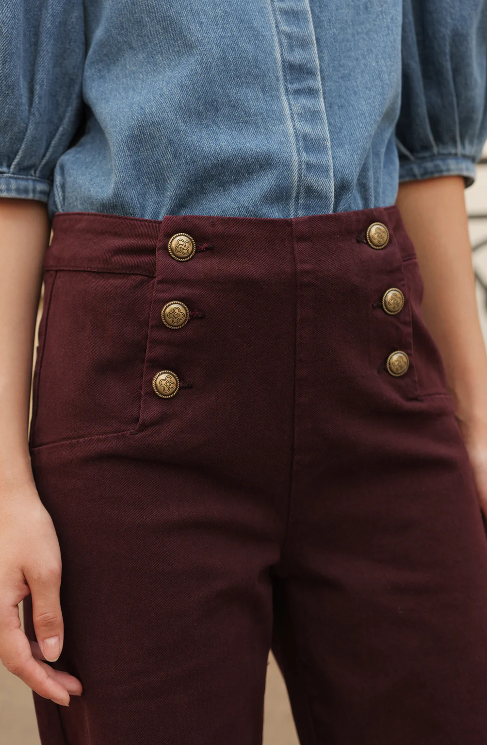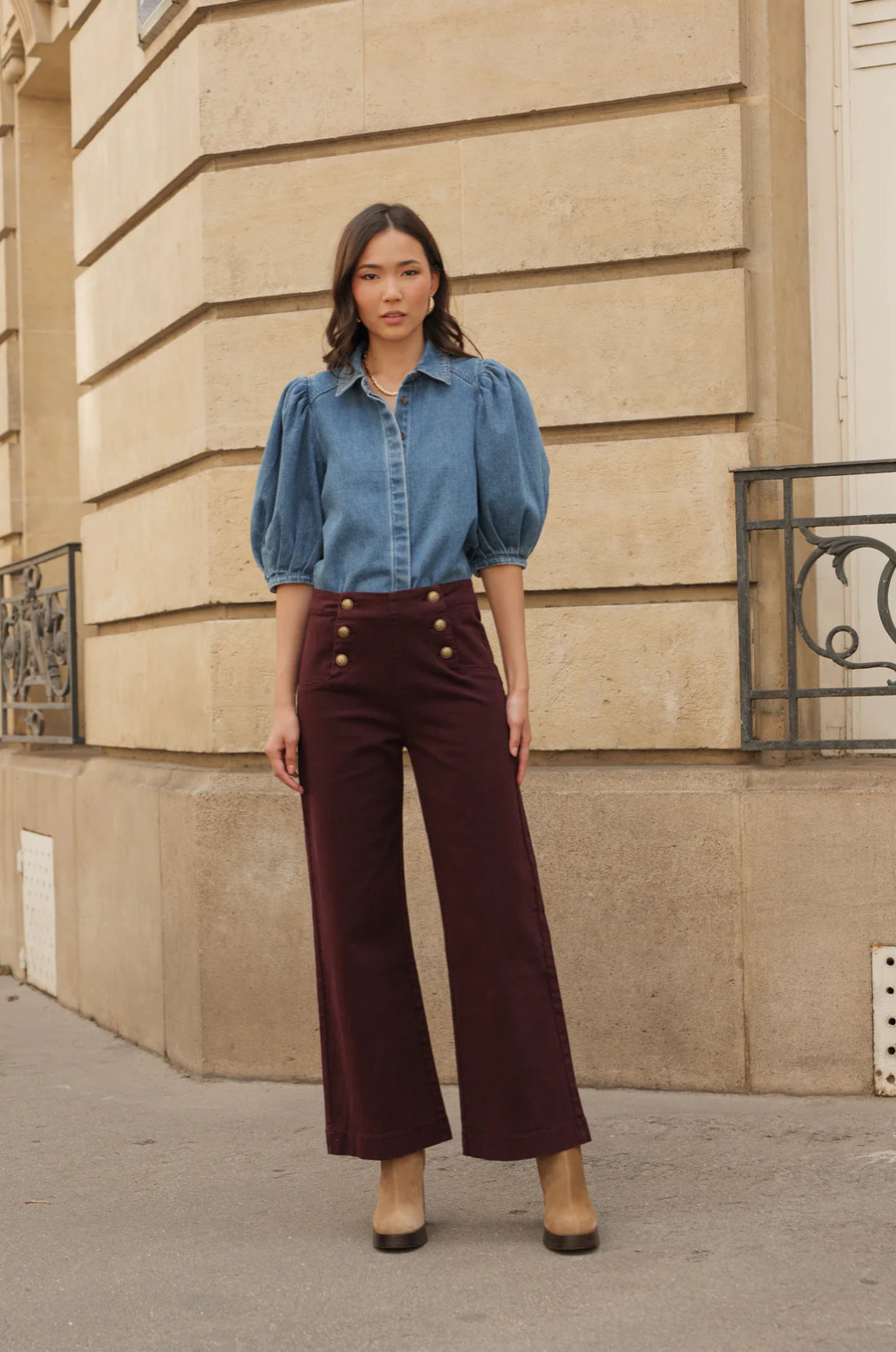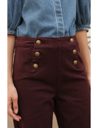 Le jean Victorine a été conçu avec des détails précis qui le rendent unique : ses boutons à pont. C'est en ce détail que réside l'élégance et l'originalité de ce jean. En effet le positionnement de ceux-ci en légère diagonale permet d'affiner la taille, de plus si vous y regardez de plus près ses boutons sont d'inspiration "marine" ils ont un look très singulier et reconnaissable.