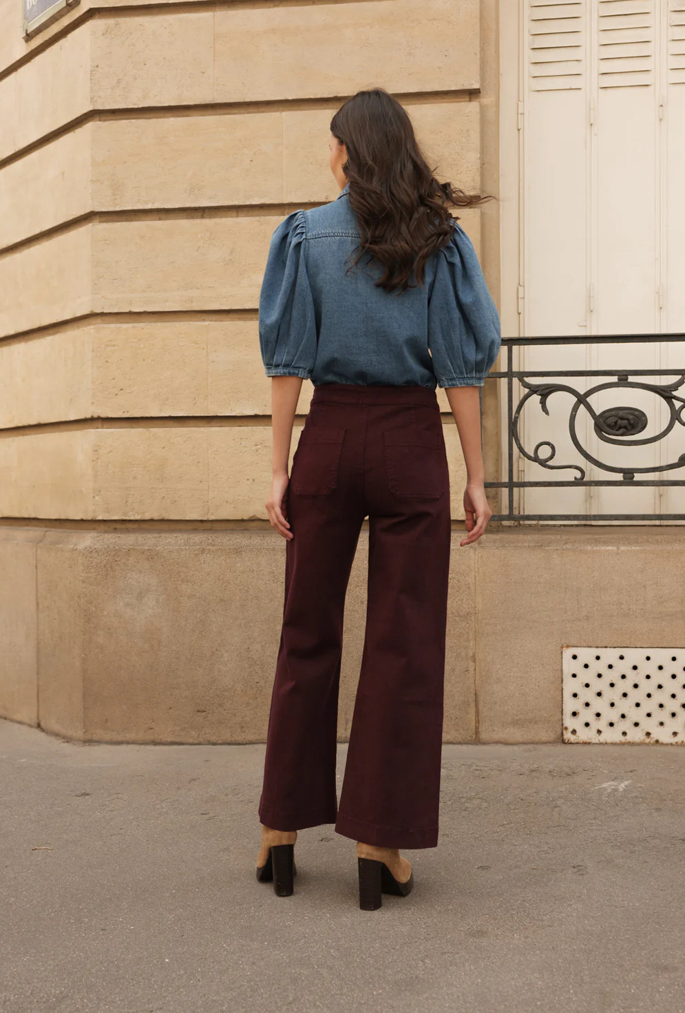 Découvrez l'élégance d'Oraije avec notre jean iconique : le jean Victorine . Le jean Victorine est un jean coupe wide, c'est à dire que c'est une coupe qui est cintrée au niveau de la taille puis qui s'évase des hanches jusqu'aux chevilles. C'est une coupe qui flatte la majorité des morphologies.