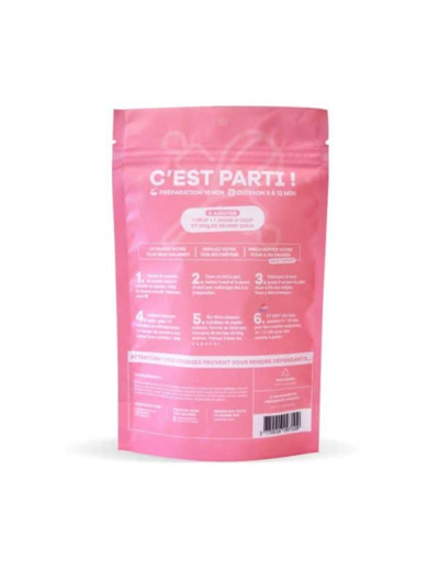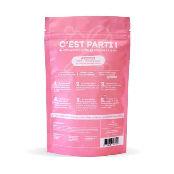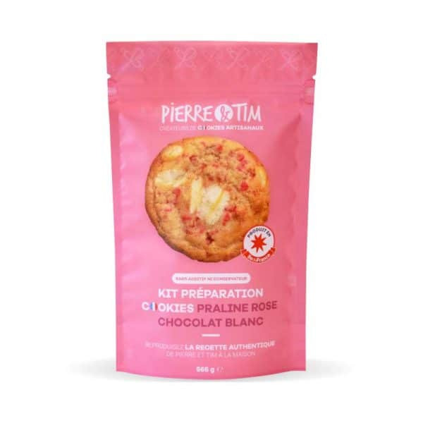 Information sur notre produit :Réalisez la recette généreuse et authentique de Pierre et Tim avec ce kit de préparation 12 cookies praline rose chocolat blanc : ajoutez simplement 1 œuf, 1 jaune d’oeuf et 100 g de beurre doux aux ingrédients présents dans le sachet.Composé avec des ingrédients locaux ou issus des meilleurs artisans Français. Packaging recyclable.