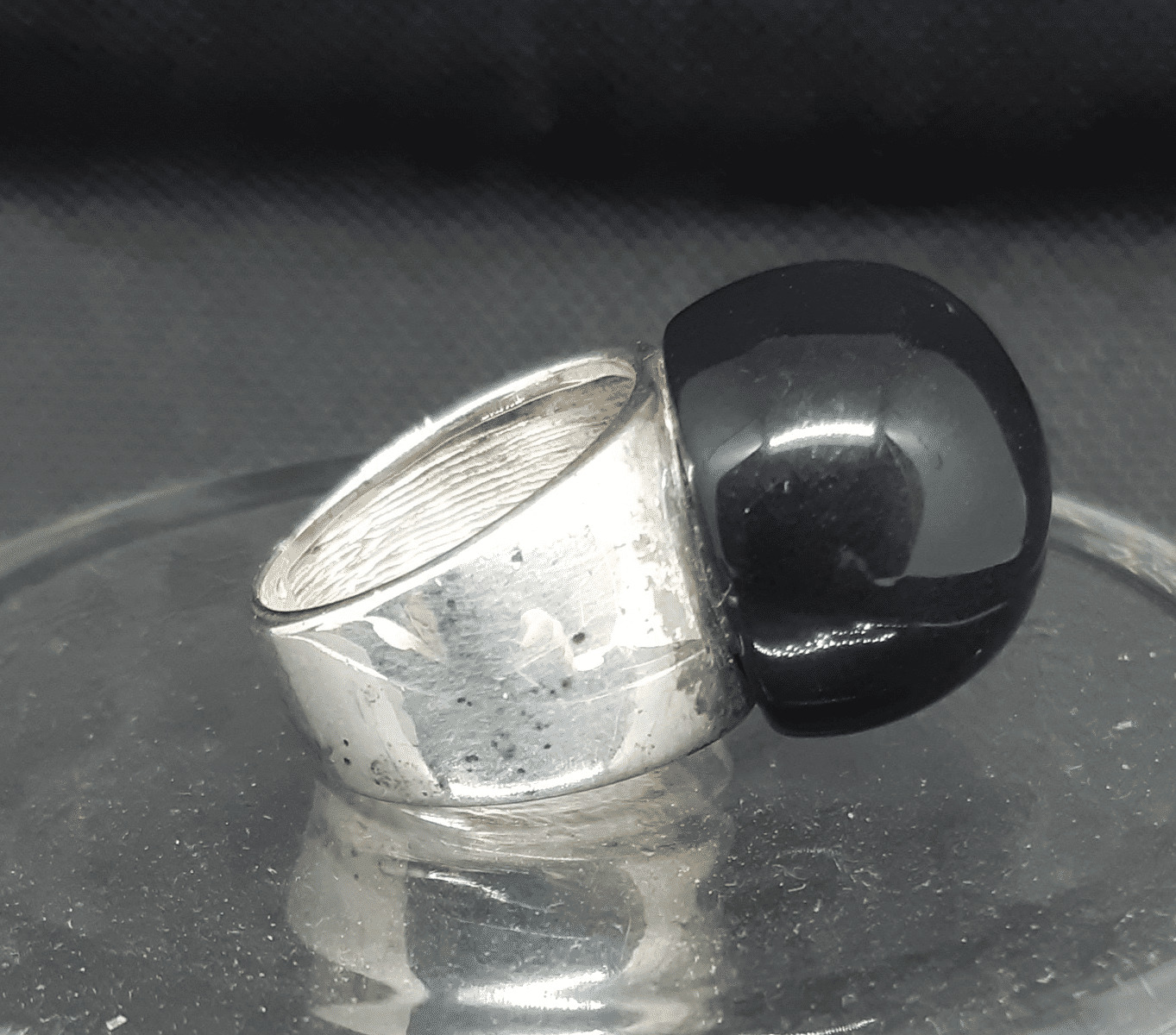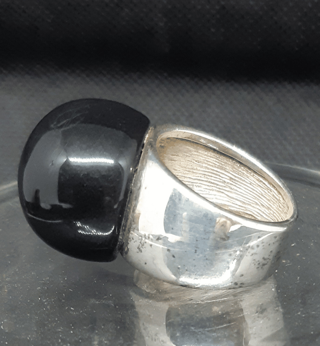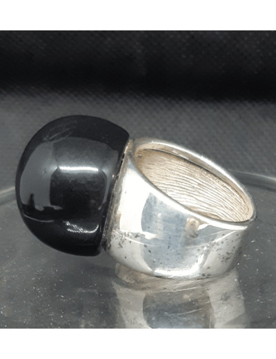 Belle bague vintage en ARGENT (poinçon) surmonté d'une boule de belle dimension en pâte de verre