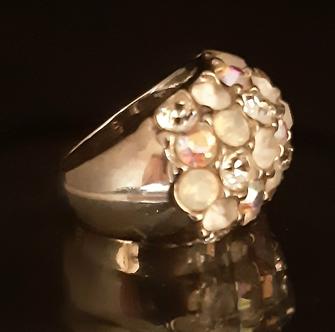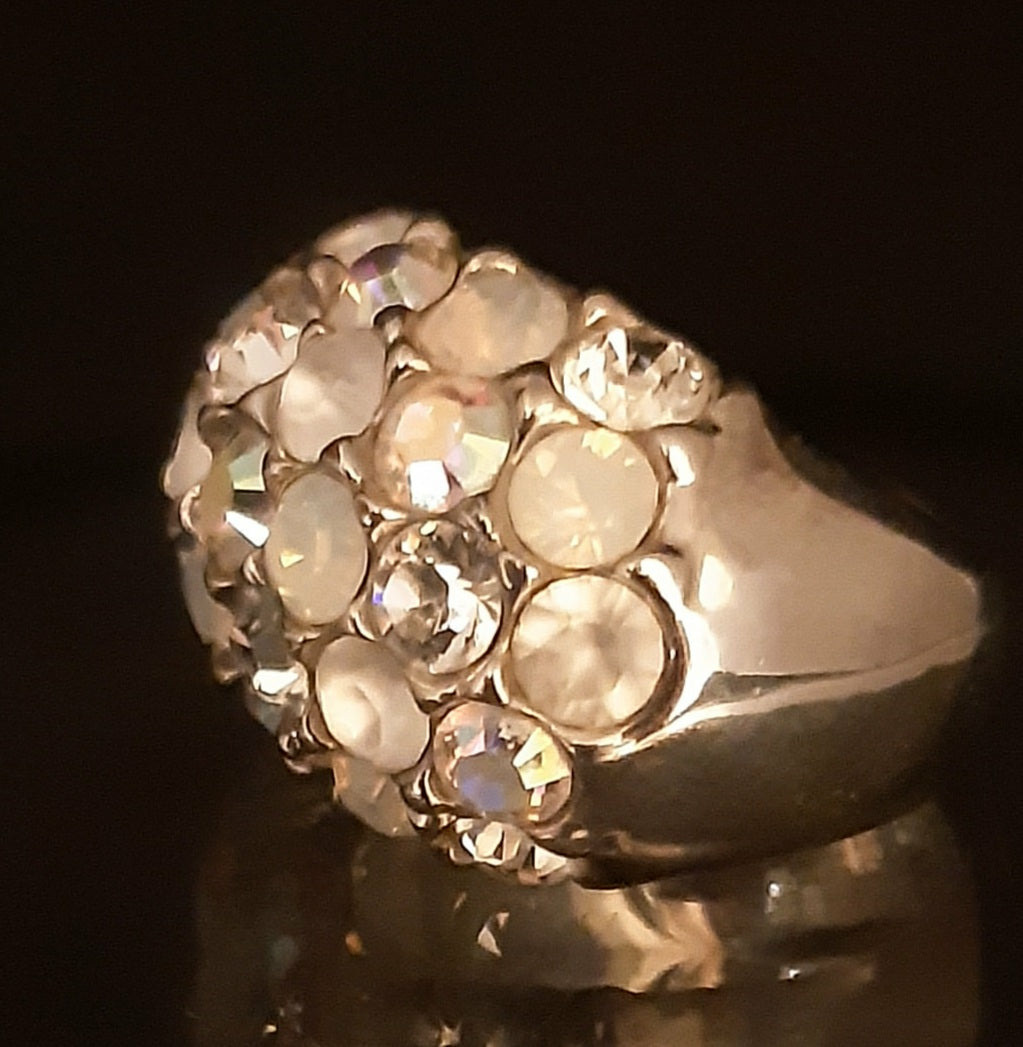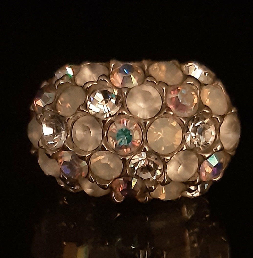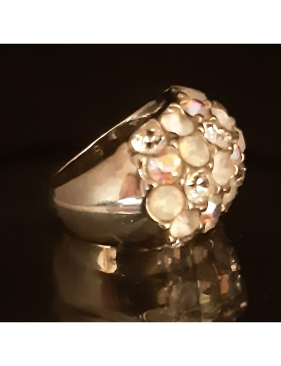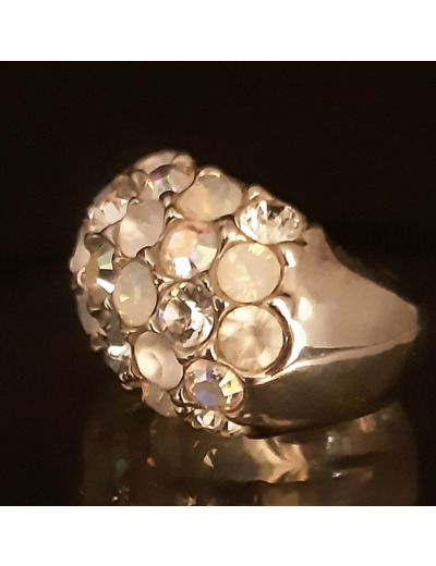 Somptueuse bague vintage , marque AGATHA, en métal doré, ornée de très jolis strass translucides et opaques, miroitants l'environnement