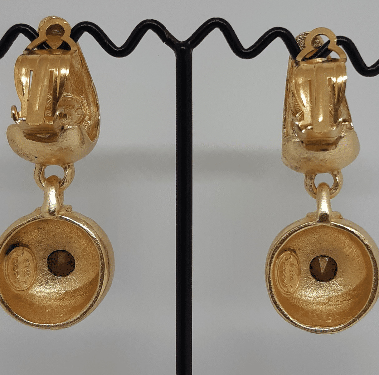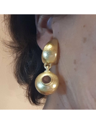 Belle paire de clips en métal doré mat et martelé, de marque POGGI, Paris