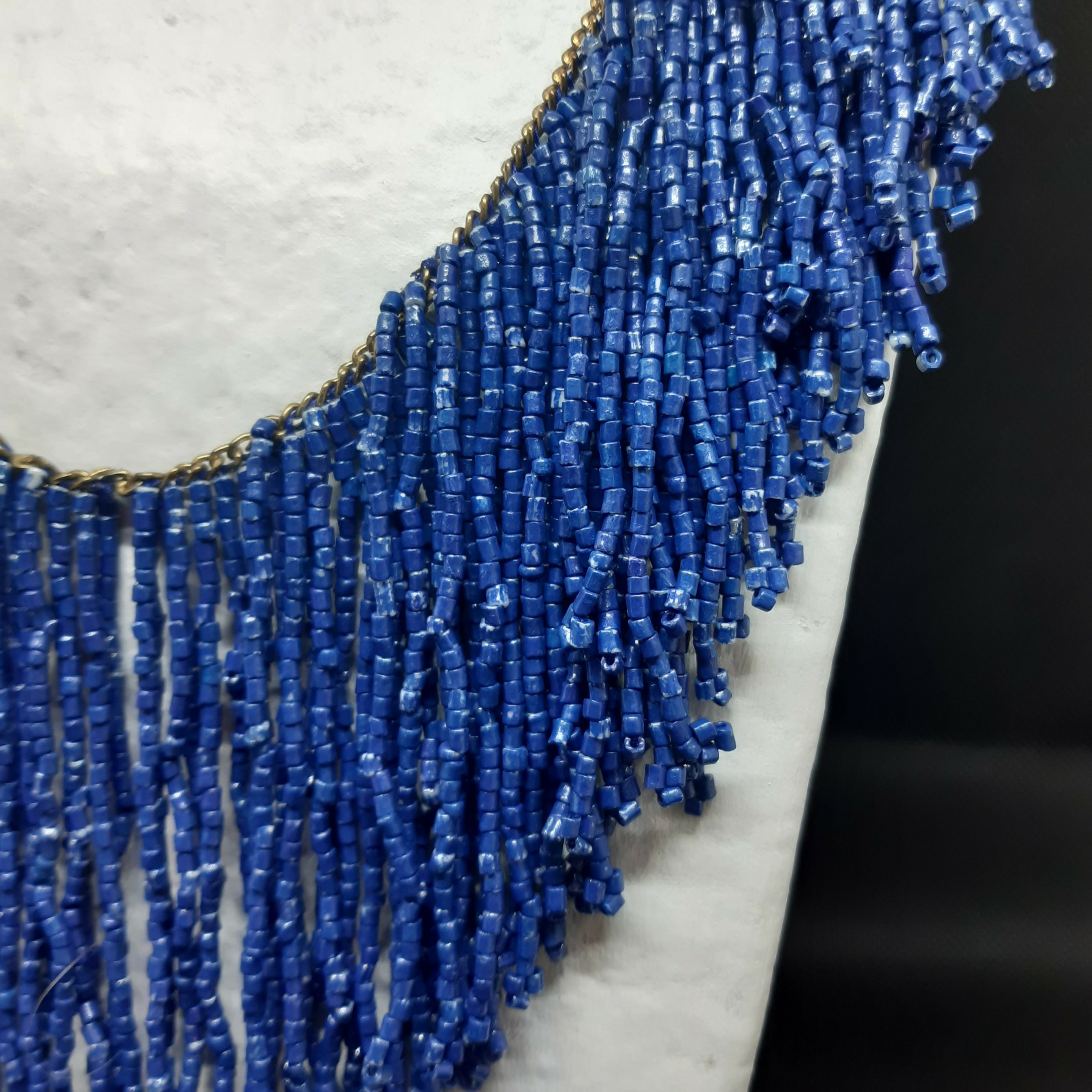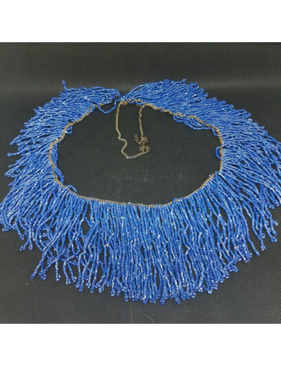 Spectaculaire sautoir présentant des franges d'une multitude de perles bleues, formant comme un plastron