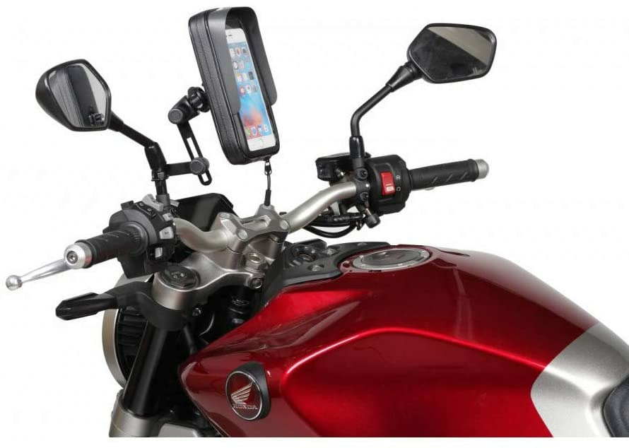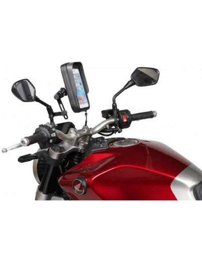 Support imperméable pour smartphone valide pour toutes les motos. L´accessoire parfait pour les motards qui font des voyages larges ou simplement pour centre-ville. Selon la version, le support peut se fixer au guidon ou au rétroviseur, de façon simple et rapide, grce à sa fixation ajustable.