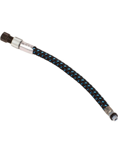 Connexion flexible : permet un gonflage plus loin et empêche d'endommager la tige de la valve. Montage : 2 clips de fixation 105 XL Corps : PVC Poignée : résine Technopolymère Connexion : flexible Schrader + adaptateur Presta Longueur : 300 mm Poids : 110 g