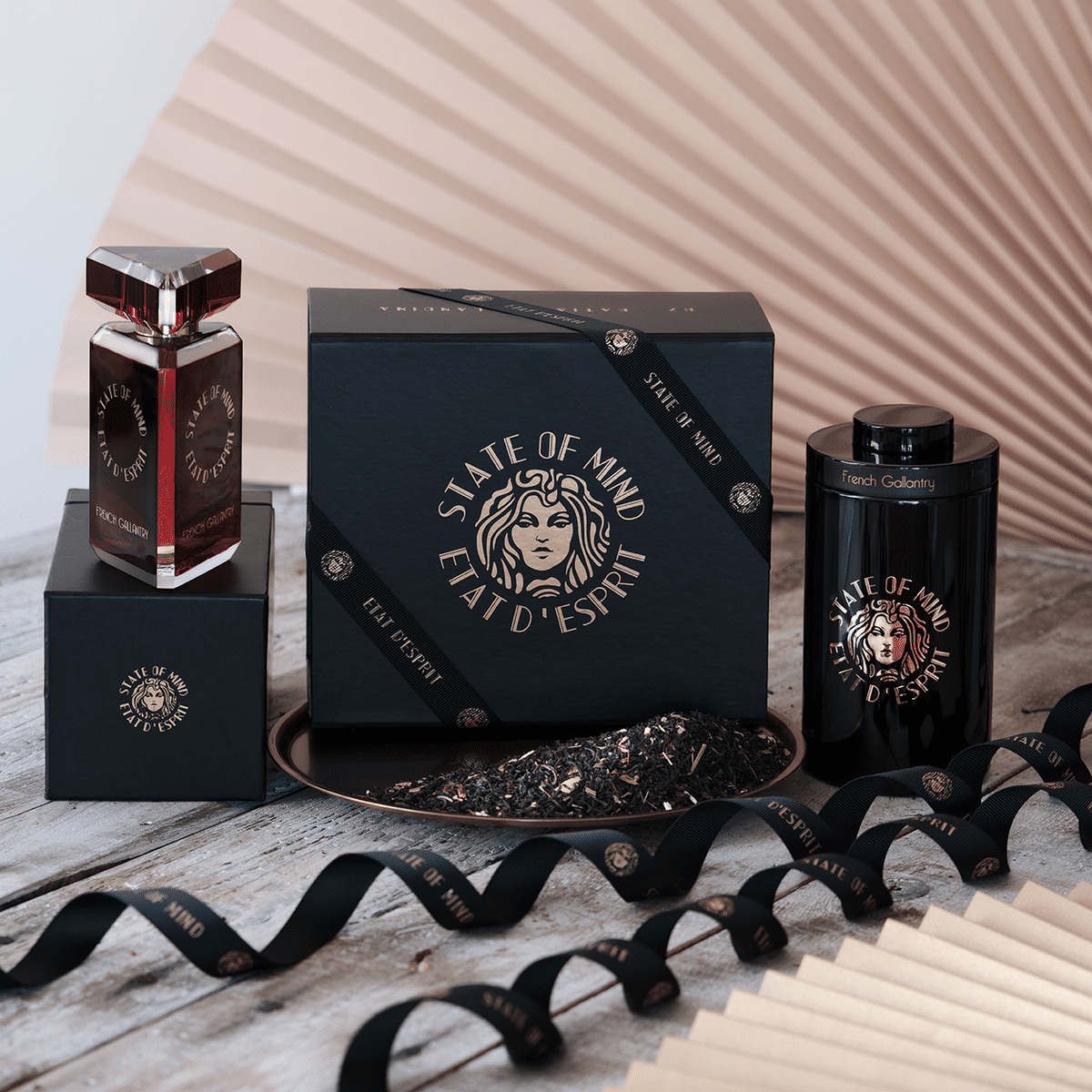 Coffret contenant un parfum et un thé