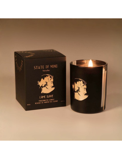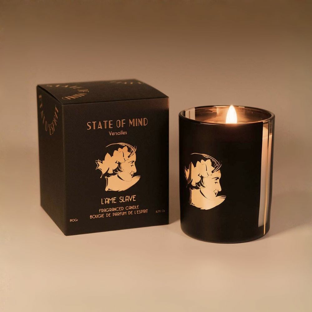 Découvrez la bougie L'ÂME SLAVE de la maison de parfums de niche STATE OF MIND. Une bougie élégante, avec son conteneur noir mat et son couvercle en bois, incarne l’esprit mystérieux et romantique de l'Ame Slave. Le design Art Déco de la bougie, avec un personnage doré gravé sur le côté, fait de cette bougie un objet décoratif unique, ajoutant une touche de luxe à votre intérieur.