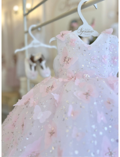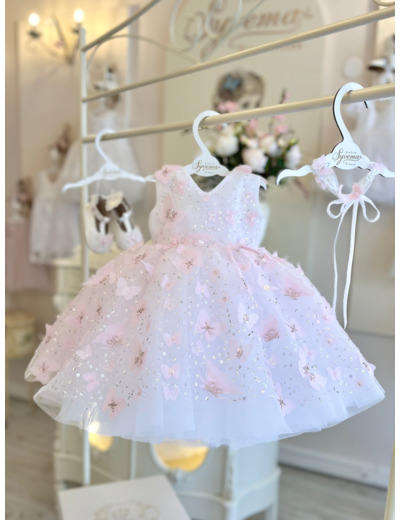 This adorable baby dress made with a organza top and gorgeous lace adorned with 3D butterflies, beads, and sequins, it’s sure to make her shine. The soft tulle underskirt adds a lovely fullness, while the cotton lining ensures comfort all day long.
