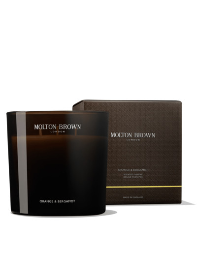 Une grande bougie parfumée aux notes d'orange et de bergamote, offrant une ambiance fraîche et revitalisante pour la maison.