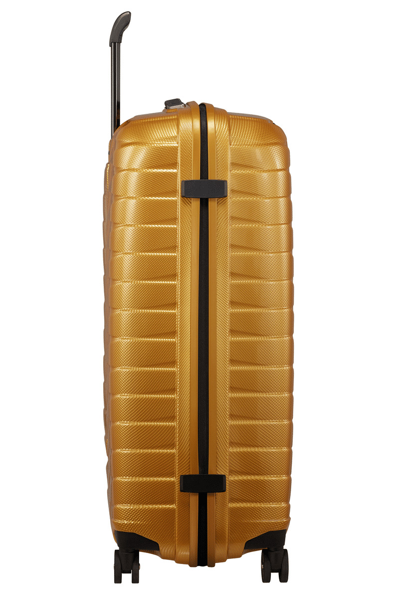 Caractéristiques : Ce modèle de taille moyenne dispose de quatre roues multidirectionnelles, d'une serrure TSA intégrée, et d'un intérieur en PET recyclé. Idéal pour des voyages de moyenne durée.