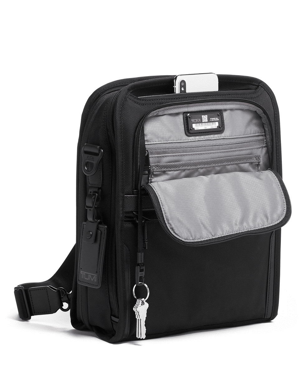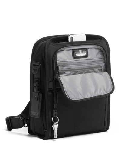 Description : Ce sac polyvalent de la collection Alpha 3 est conçu pour répondre aux besoins des voyageurs fréquents. Il dispose d’un compartiment principal avec fermeture éclair, d'une poche frontale en U et d'une poche arrière zippée. Il offre également des options de transport flexibles avec une sangle amovible réglable pour un port en crossbody et des poignées supérieures en cuir. Son espace intérieur est optimisé avec des poches multimédia, des poches ouvertes, des boucles pour stylos et un porte-clés, ainsi que le Tracer® pour une sécurité accrue.